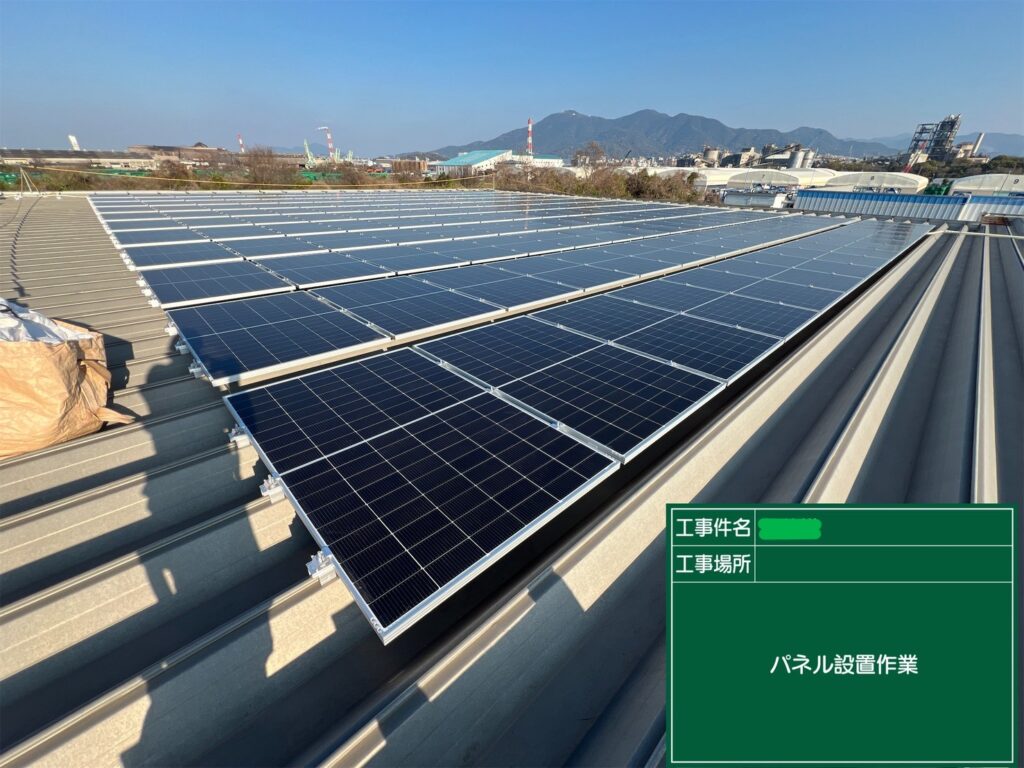 2026年04月15日 お知らせ 福岡県 産業用太陽光 広島市を中心に、太陽光・蓄電池・エコキュート等の販売・施工を行っております株式会社VAUGです。 福岡県にて、産業用太陽光パネルの設置工事を行いました。
